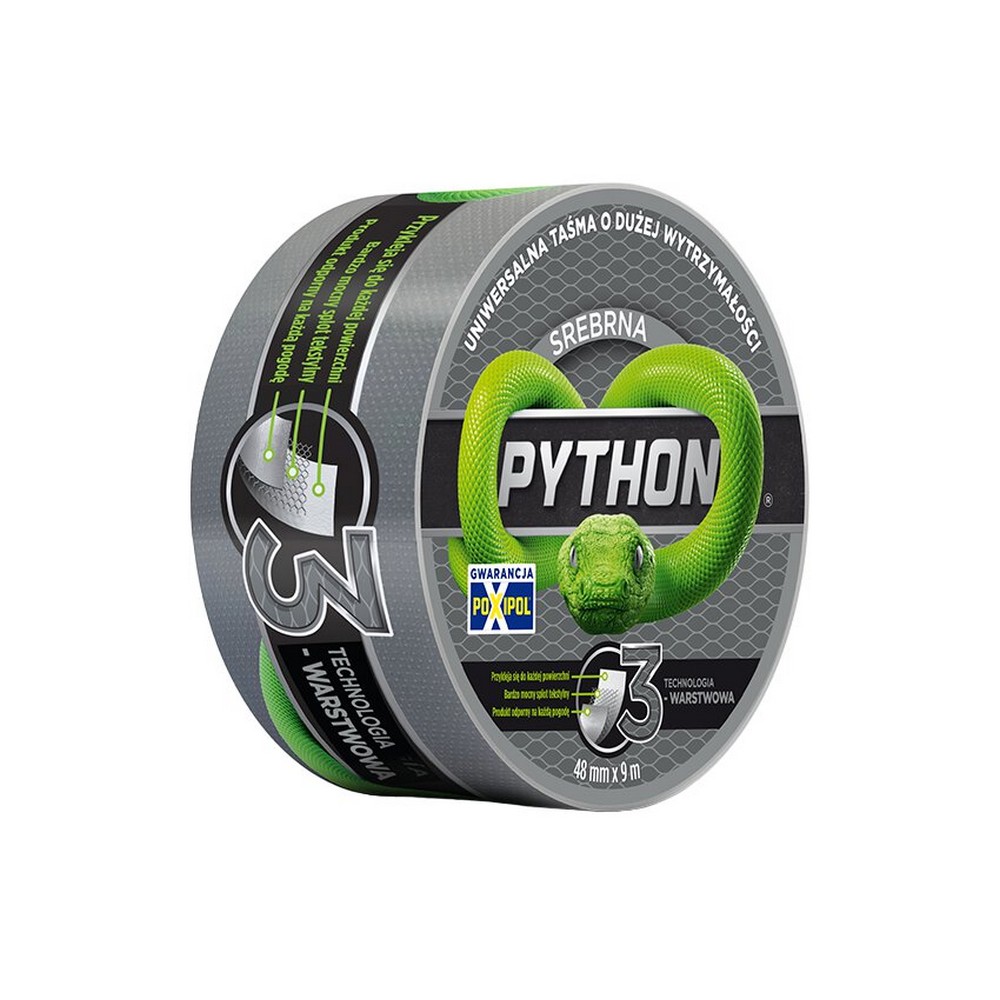 Universālā remonta lente PYTHON 3 slāņi – 48 mm × 9 m, sudraba