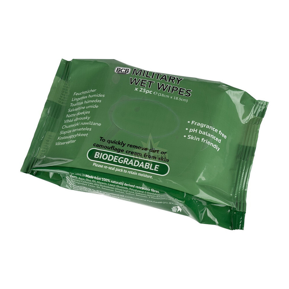 Uzticama higiēna, kad ūdens nav pieejams. BCB militārās mitrās salvetes (25 gab.) ir paredzētas efektīvai personīgajai higiēnai lauka, taktiskos un āra apstākļos. Tās ir ideāli piemērotas netīrumu, tauku, sviedru un maskēšanās krēma ātrai noņemšanai tieši no ādas.