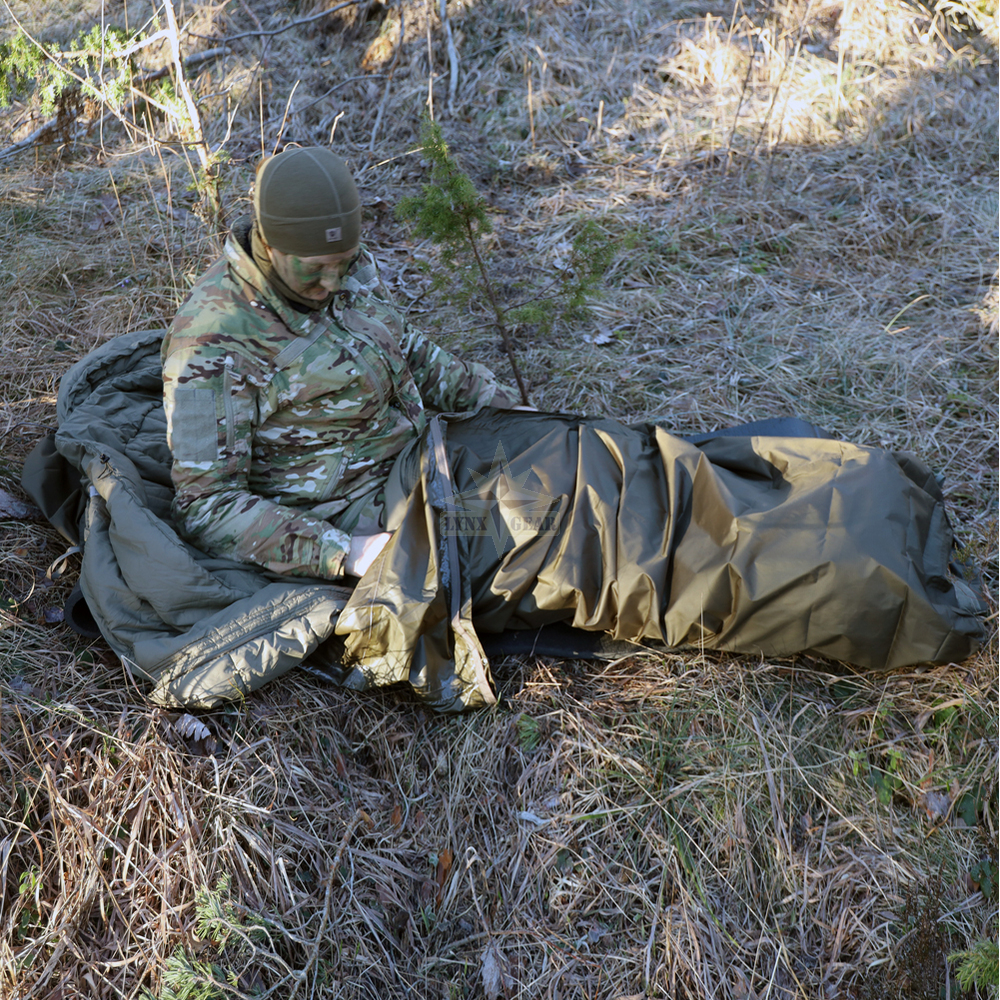 SNIGEL Sleeping Bag Cover with Hood 2.0 ir viegls, profesionāls guļammaisa pārvalks, kas nodrošina papildu komfortu un aizsardzību karavīriem un āra profesionāļiem dažādos laika apstākļos. Kompakts, izturīgs un uzticams — tas sniedz drošu atpūtu jebkurā vietā, sākot no lauka nometnēm līdz skarbām dabas vidēm.