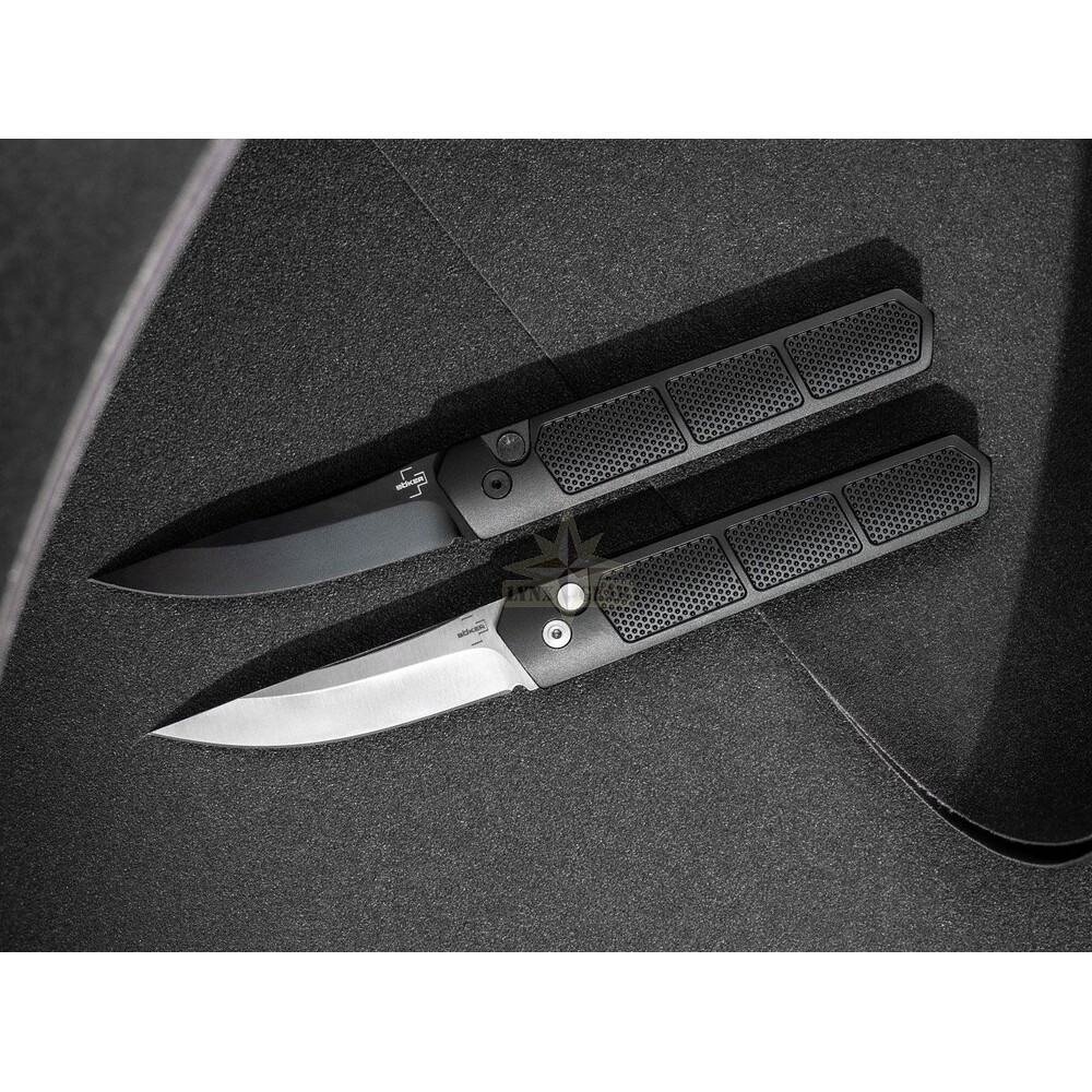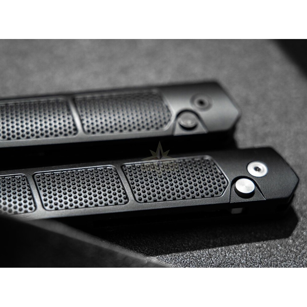 D2 instrumentu tērauda asmens ar satīna apdari izlec momentāni ar pogas nospiešanu, nodrošinot lielisku griešanas veiktspēju, asmens noturību un labu izturību pret koroziju. Slaidais alumīnija rokturis ir aprīkots ar neslīdošu satvēriena tekstūru, kas ļauj droši kontrolēt nazi pat sarežģītos apstākļos.