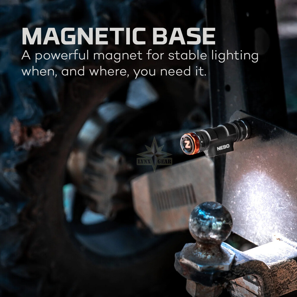 Модель входит в серию NEBO Black Line и отличается матовым чёрным покрытием с минимальным брендингом, что делает её подходящей для профессионального использования и персонализации. Фонарь можно снять с крепления и использовать как компактный рабочий фонарь с магнитным основанием.