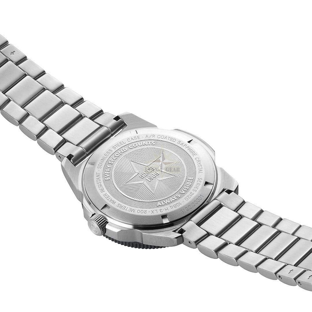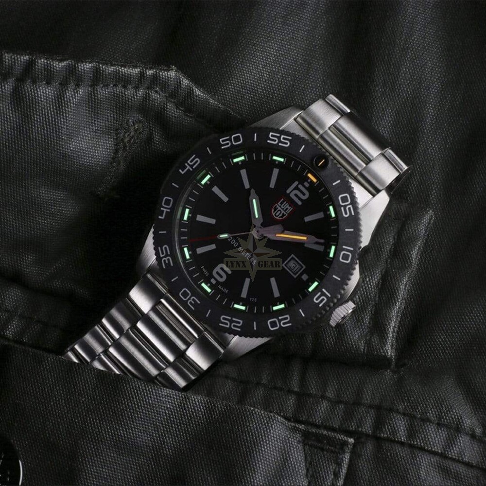 Luminox Pacific Diver 44mm сочетает классический корпус из нержавеющей стали с лёгким однонаправленным вращающимся безелем CARBONOX™, создавая прочные и современные часы для дайвинга, подходящие как для подводного использования, так и для повседневной носки.
